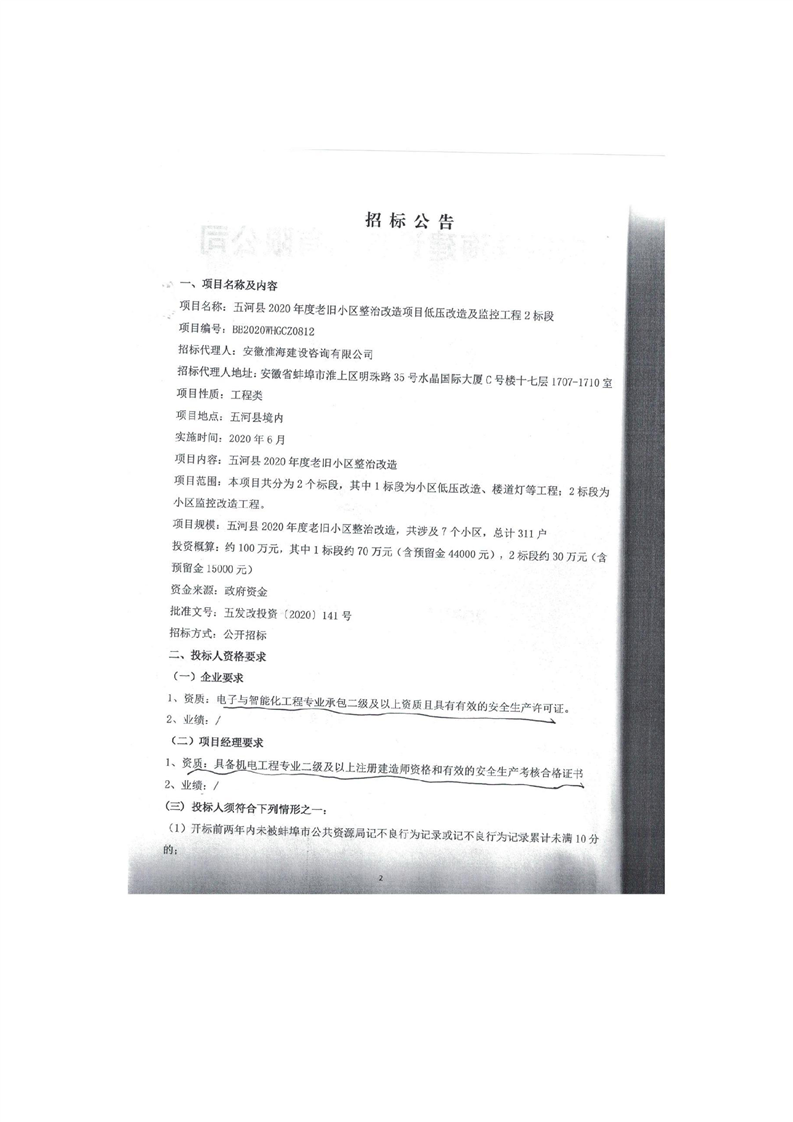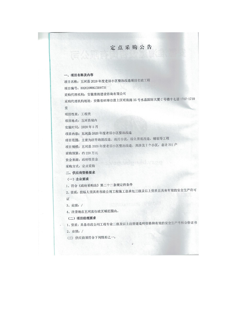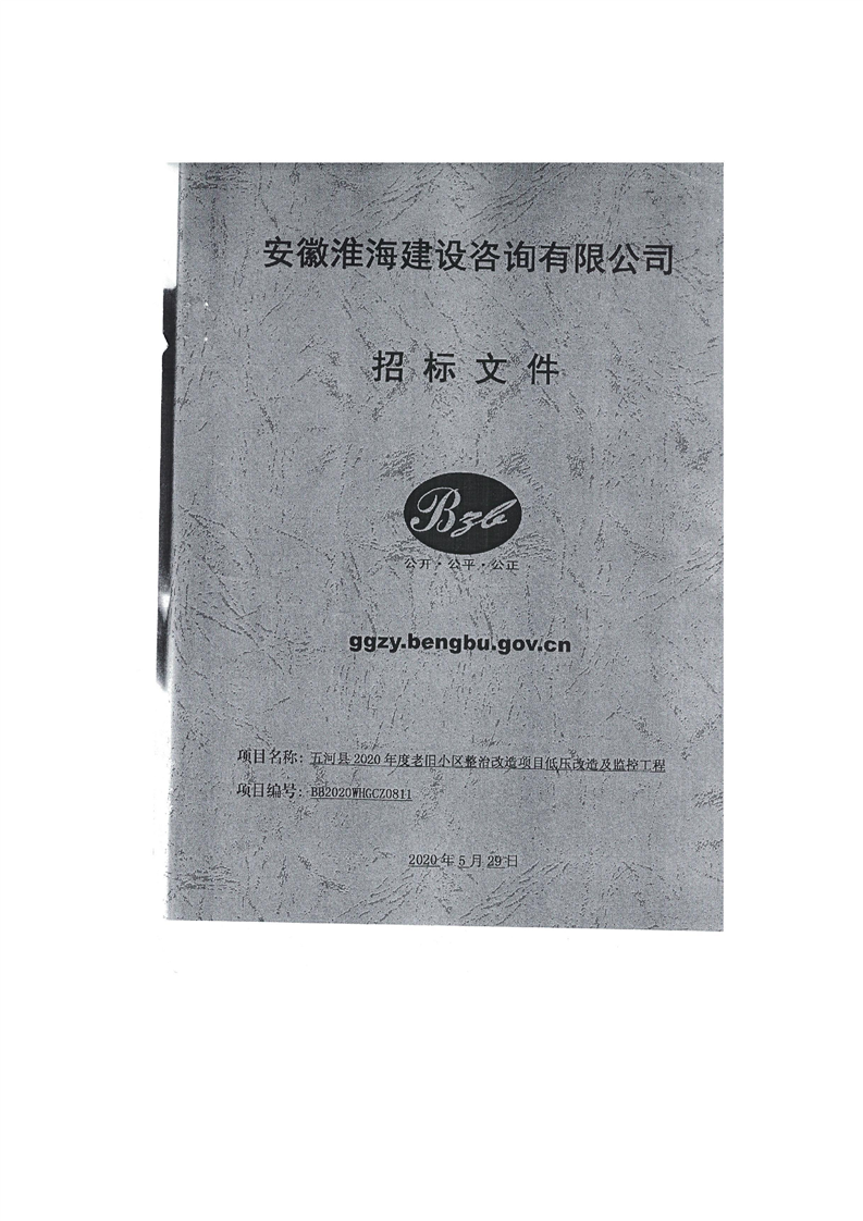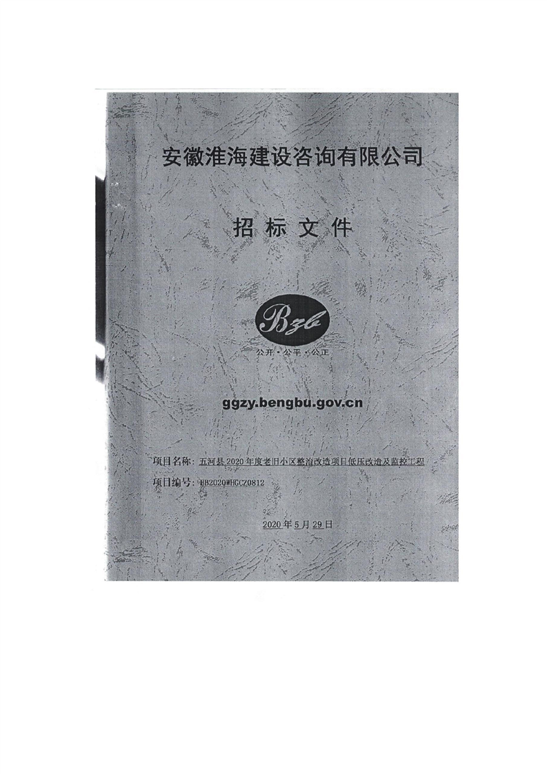 五河县2020年度老旧小区整治改造项目市政工程施工招标文件