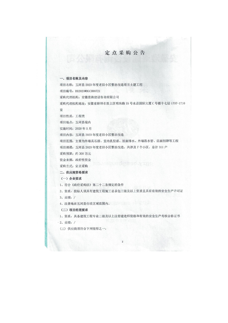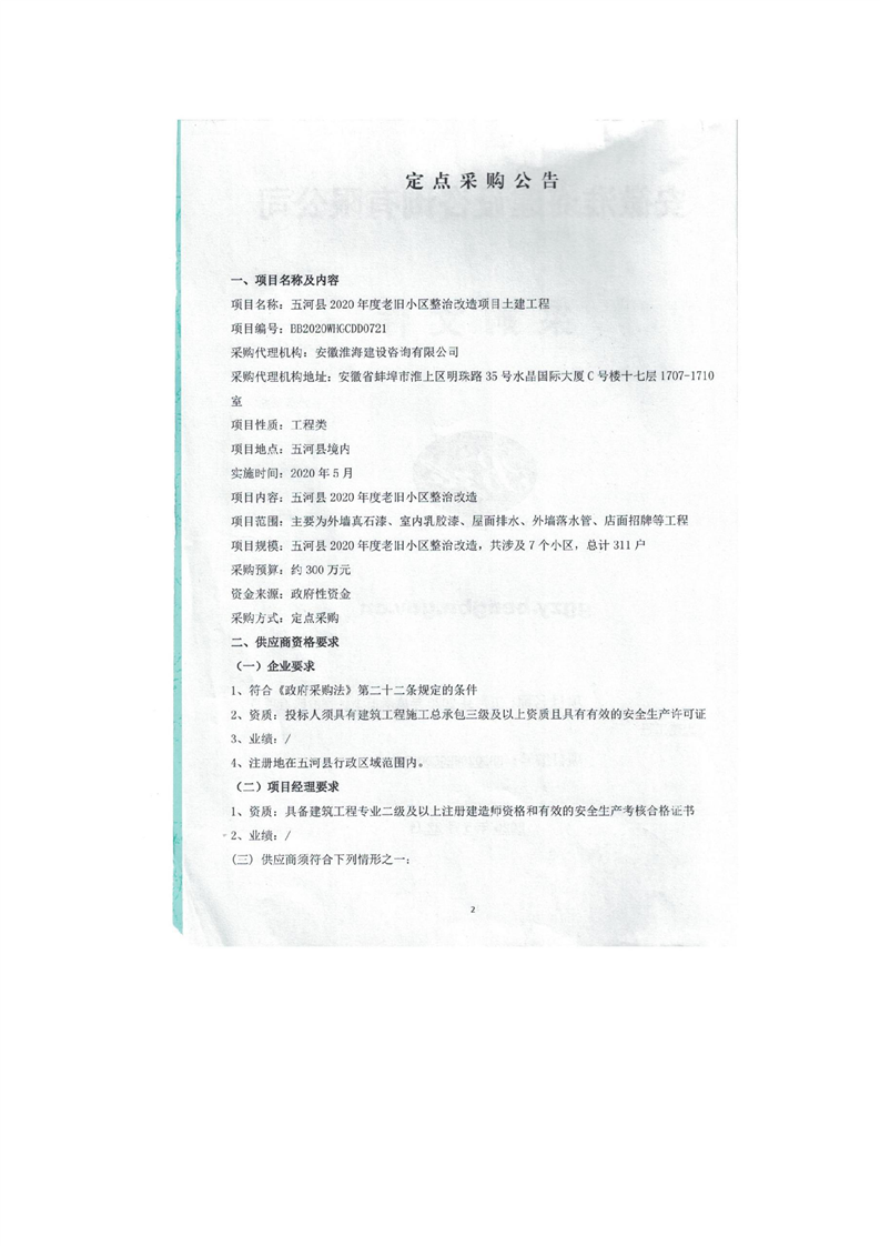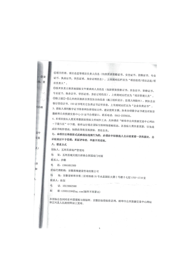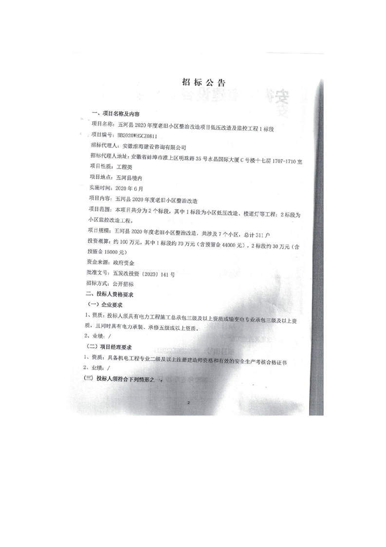 五河县2020年度老旧小区整治改造项目市政工程施工招标文件