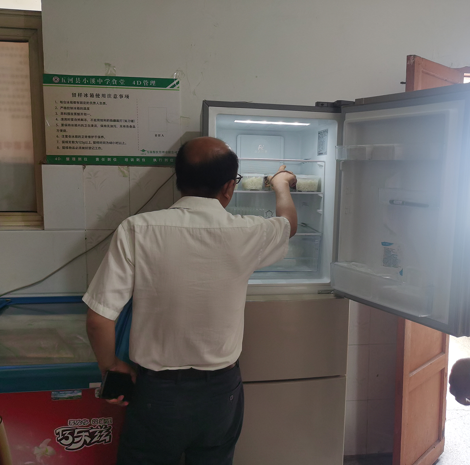 检查内容:小溪镇郏正国部长到小溪镇中学食堂检查食堂后厨、冰箱等食品设施