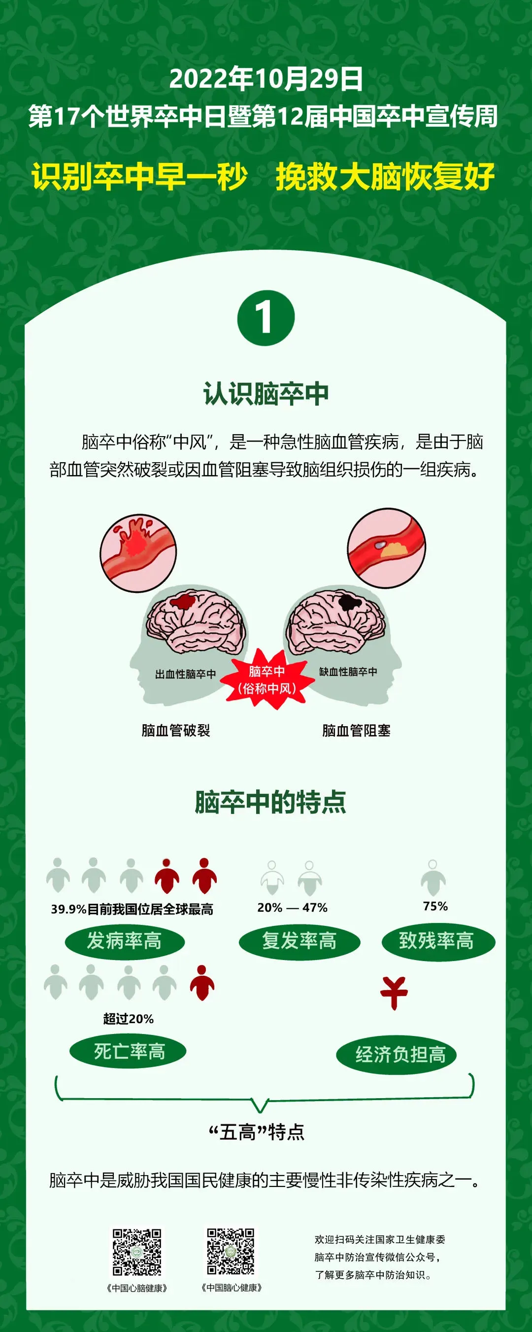 这意味着每5位死亡者中就至少有1人死于脑卒中,且脑卒中后存活者中70%留有不同程度的残疾。